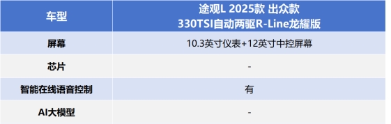 途观L同样有不错的科技感表现,中控屏尺寸为12英寸,支持语音交互,科技氛围营造的不错。有所欠缺的是,这款车没有内置主流芯片,功能上不支持双区域语音分区唤醒识别等功能配置,对于追求交互流畅性和趣味性的家庭来说,体验感可能会有所欠缺。