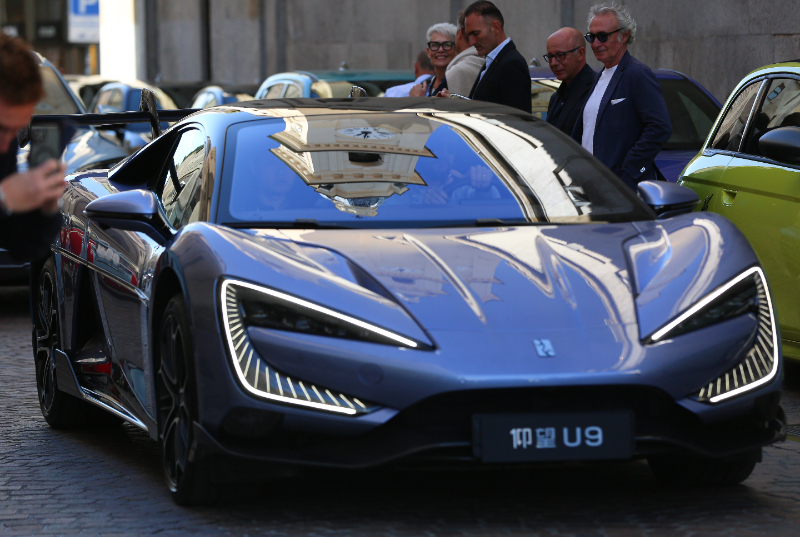 9月13日,在意大利都灵,人们观看一辆仰望U9参展车。新华社记者 李京 摄